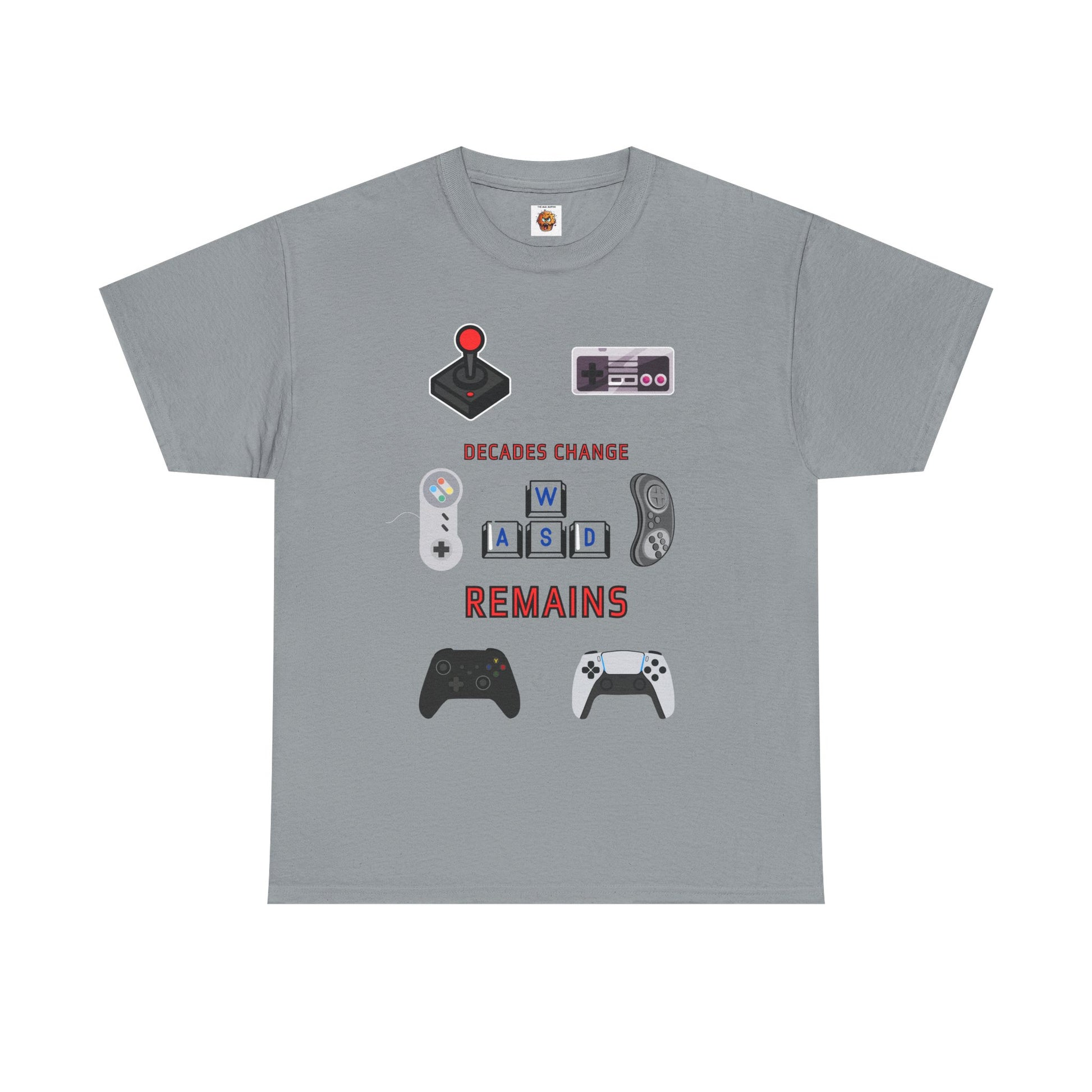 'Decades Change, WASD Remains' Unisex Heavy Cotton Tee - PC Gaming Keyboard Keys, Gamer, Video Game, Controller, Retro, Geek, Nerd