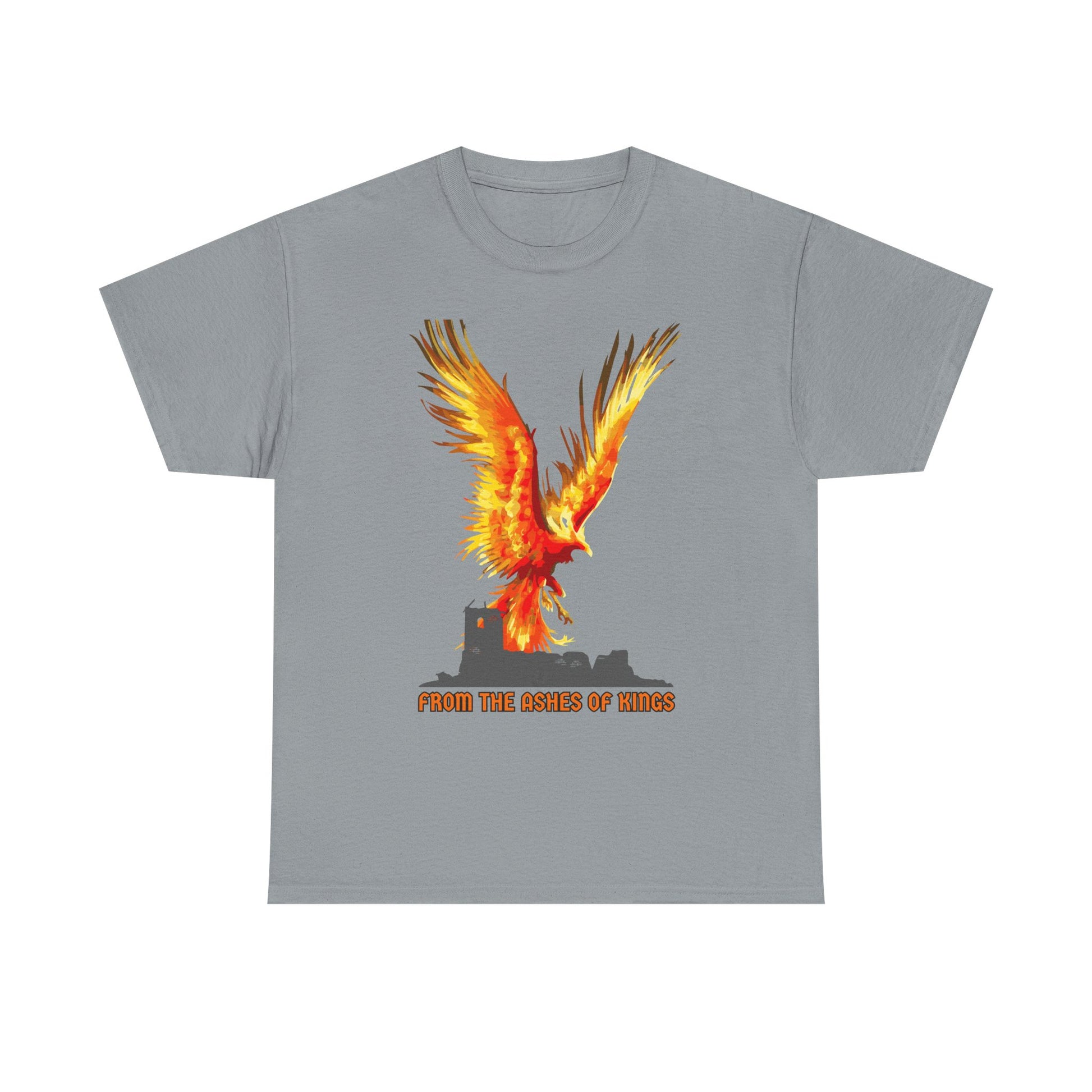 'From The Ashes Of Kings' Phoenix Rising Unisex Heavy Cotton Tee, Firebird Shirt, Unique Graphic Tee, Casual Wear, Gift for Friends, Festival Apparel, DND, RPG, TTRPG, Geek, Nerd