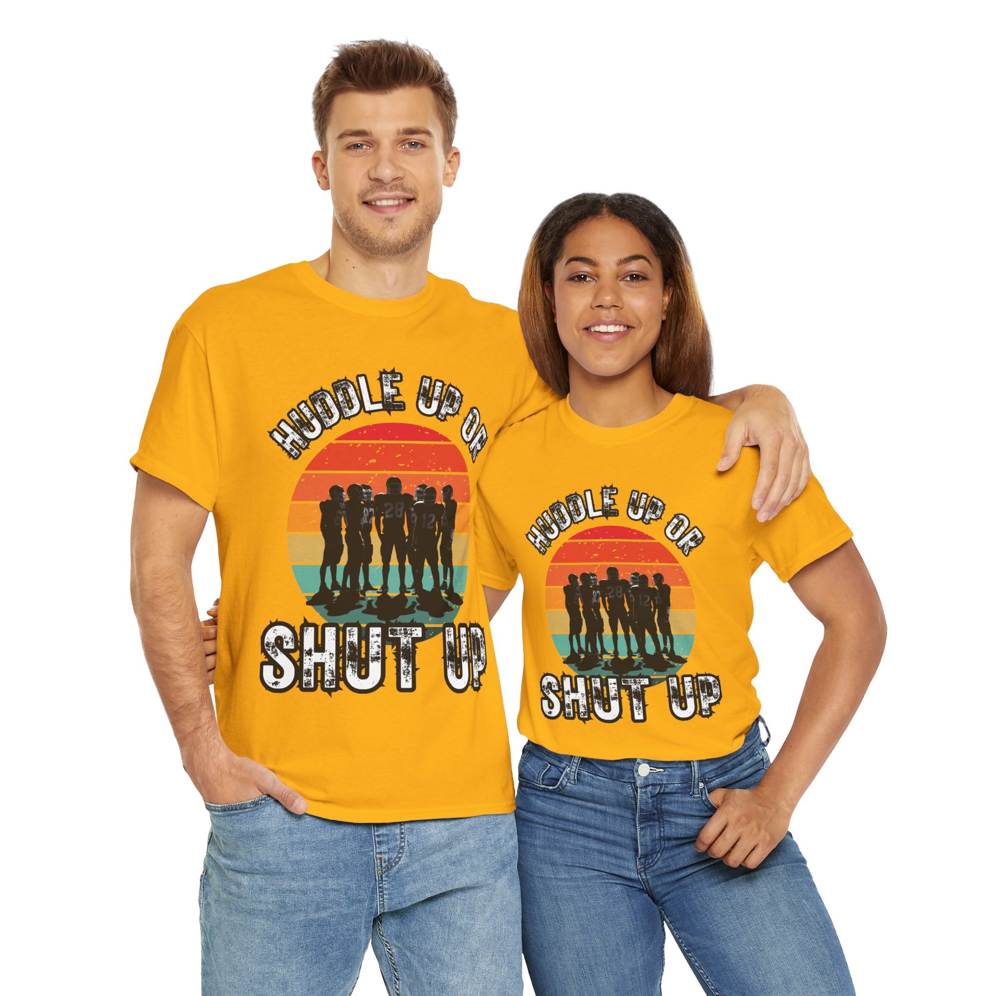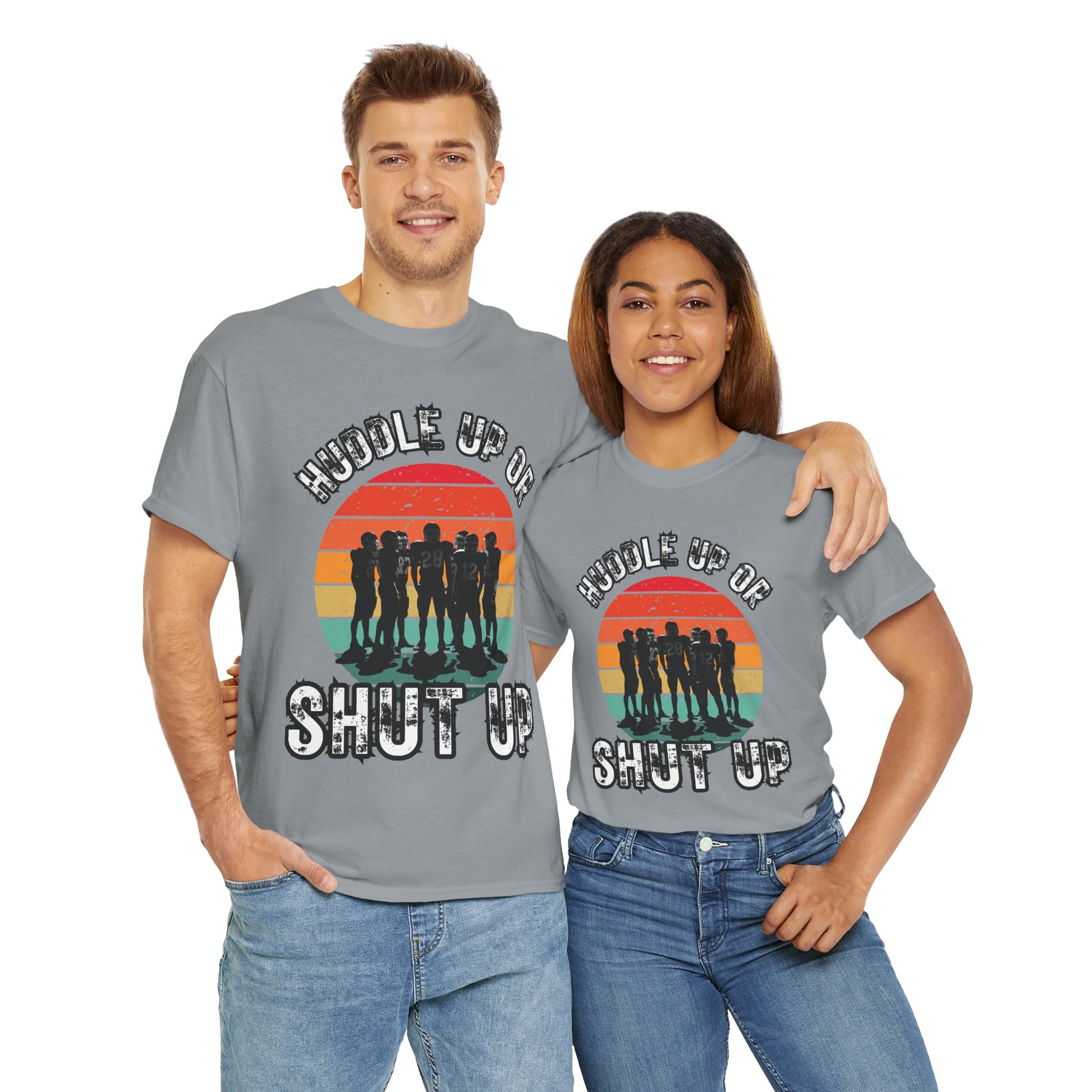 'Huddle Up Or Shut Up' Unisex Heavy Cotton Tee with Retro Design, Vintage Graphic Tee, Gift for Friends, Casual Wear, Summer Shirt, Funny T-Shirt, American Football