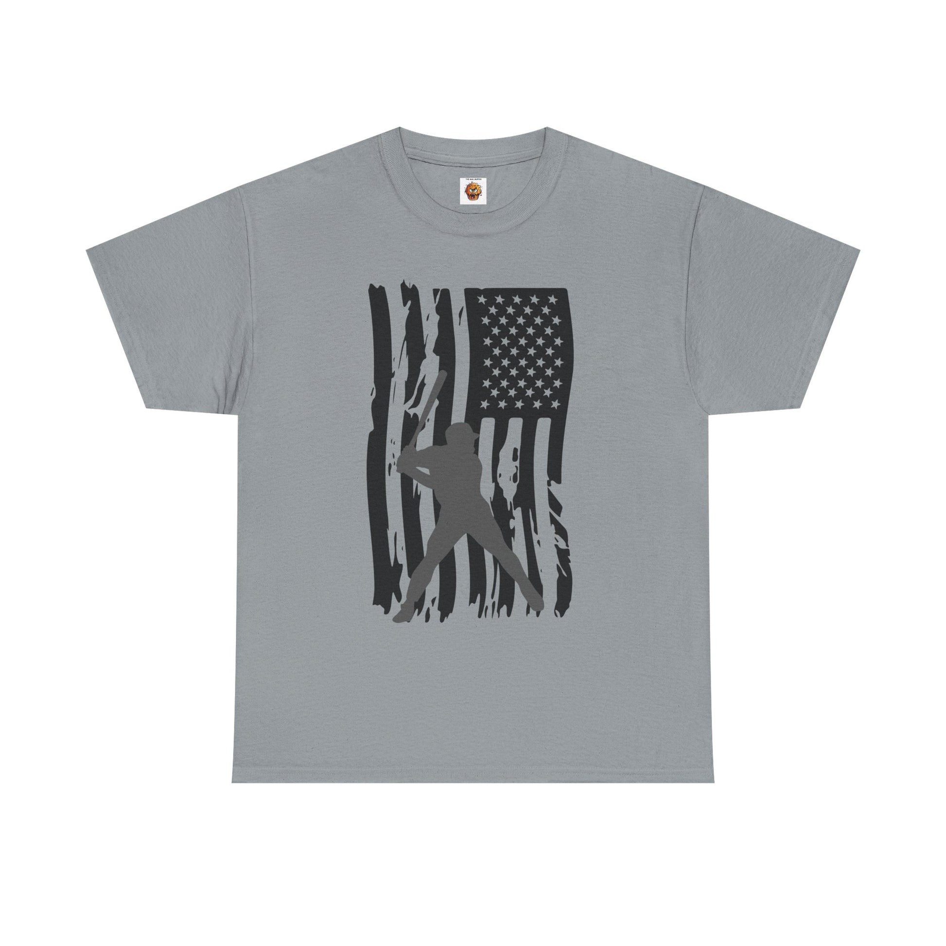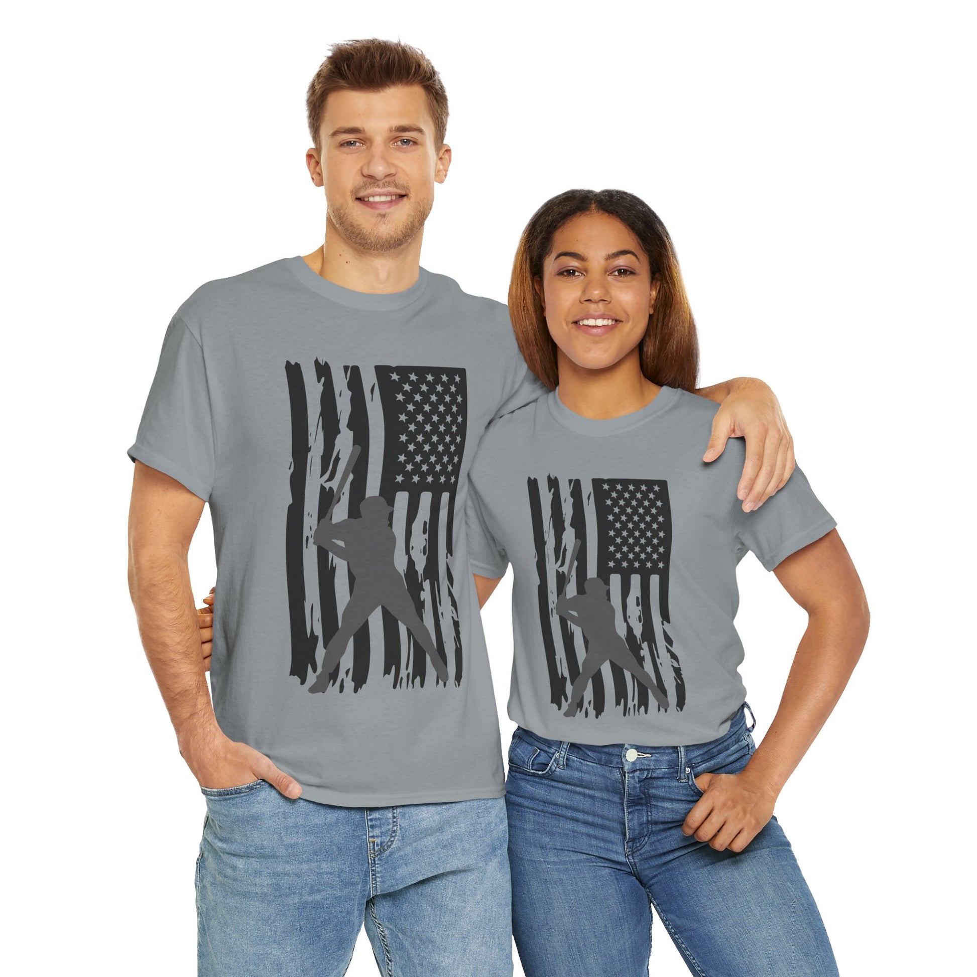 Patriotic Baseball Silhouette Unisex Heavy Cotton Tee | American Flag Graphic T-Shirt, Casual Wear, Independence Day, Gift for Baseball Fans, Batter Up
