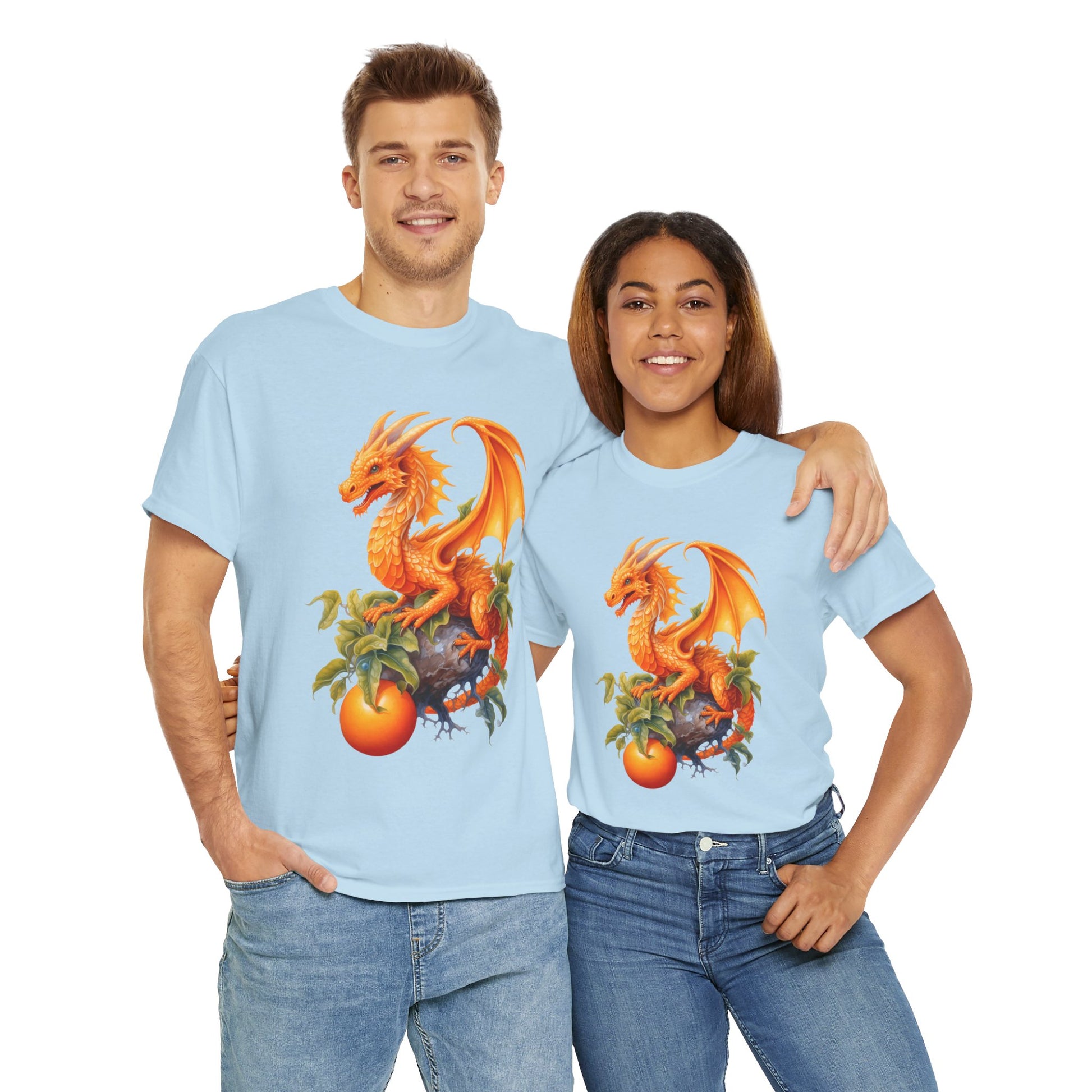 Introducing the Unisex Heavy Cotton Tee, a perfect blend of comfort and casual style. This distinctive shirt features a vibrant design of a dragon perched on a symbolic orange, bringing a playful yet fierce vibe to your wardrobe. Ideal for those who love fantasy illustrations, it’s great for casual outings, meetings with friends, or relaxed days at home. Perfect as a gift for birthdays or as a conversation starter at events like comic conventions or themed parties. Celebrate your unique style with this tee during holidays like Halloween or when you're simply looking to express creativity.