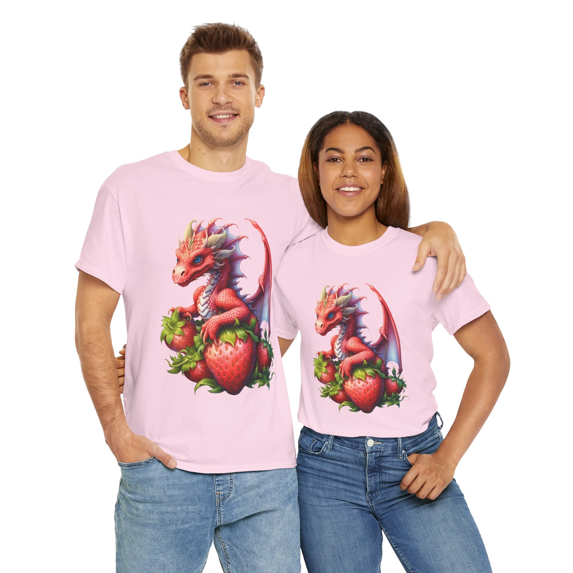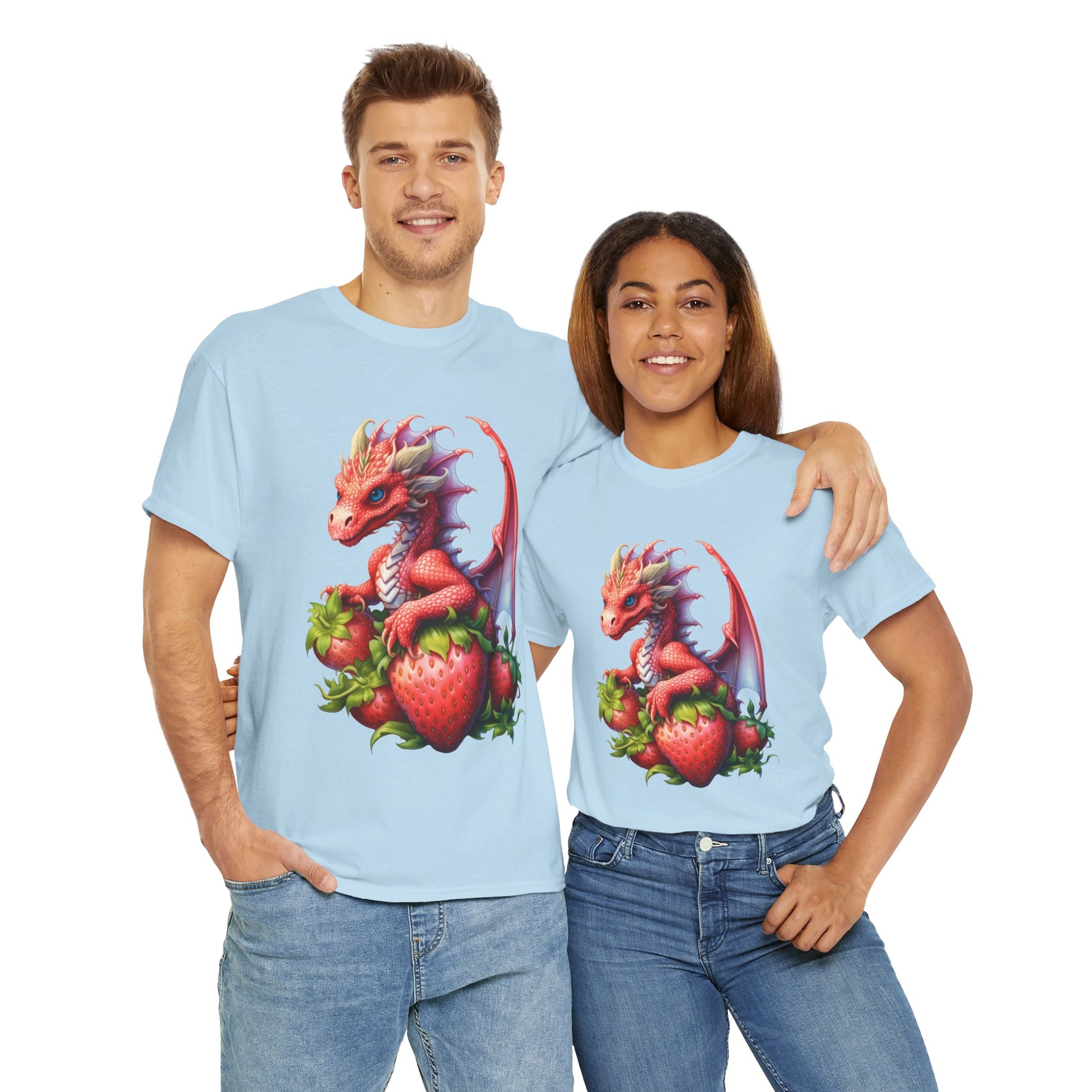 Discover our Unisex Heavy Cotton Tee, perfect for showcasing your unique style with a playful twist. Featuring a delightful dragon design nestled among vibrant strawberries, this tee radiates fun and creativity. Wear it for casual outings, at themed parties, or just lounging at home. Ideal for dragon enthusiasts, fantasy lovers, and anyone young at heart, it's a fantastic gift for birthdays, holidays, or special occasions. Let your personality shine through while enjoying the soft, comfortable fabric that can be worn year-round!